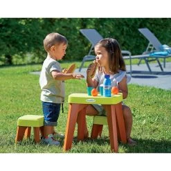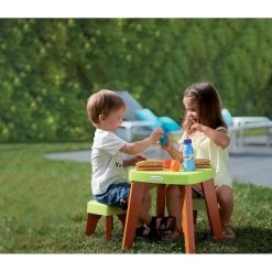 Pas besoin d’attendre le plein Ă©tĂ© pour profiter ! Un rayon de soleil et hop, on dĂ©jeune Ă l’extĂ©rieur grâce Ă la Table de pique-nique avec 2 tabourets d’Ecoiffier. Elle permet, une fois confortablement installĂ©s de jouer Ă savourer toutes les « provisions » emportĂ©es. Sachant qu’on peut bien sĂ»r aussi, grignoter ou goĂ»ter pour de vrai !Â